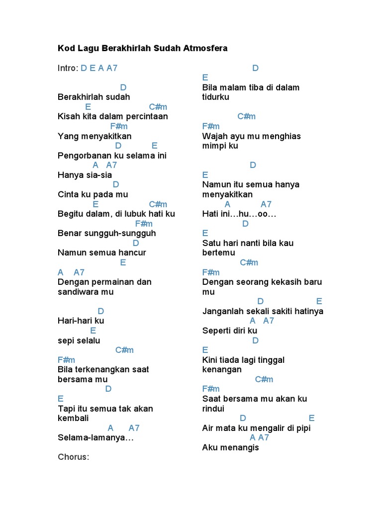 Kod Lagu Berakhirlah Sudah Atmosfera Pdf